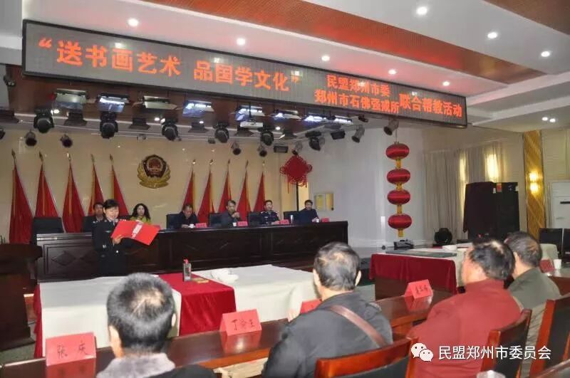 2018年11月8日,民盟郑州市委和郑州市石佛强戒所联合举办“送书画艺术 品国文化学”黄丝带帮教活动。郑州市人大常委、民盟郑州市委副主委张洛通,民盟市委秘书长宋喜玲,郑州市司法局副局长申德礼,郑州石佛强戒所政委曾海英等参加了此次活动。活动期间,河南省司法厅戒毒管理局副局长苏诗海等到帮教现场看望了大家。